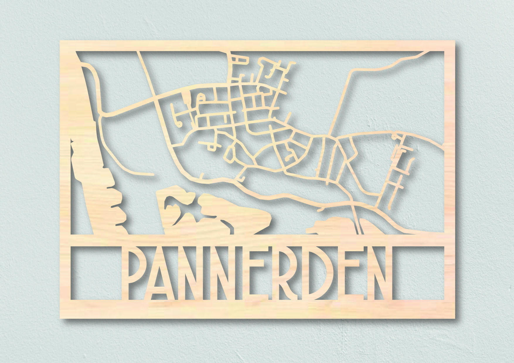 Laat een houten stadskaart maken van jouw dorp of stad. De dorps- en stadsplattegronden uit 4mm multiplex hout worden gemaakt in samenwerking met meubelwinkel de Frisfabriek in Panningen. Optioneel kan de houten plattegrond ook zwart worden gebeitst.