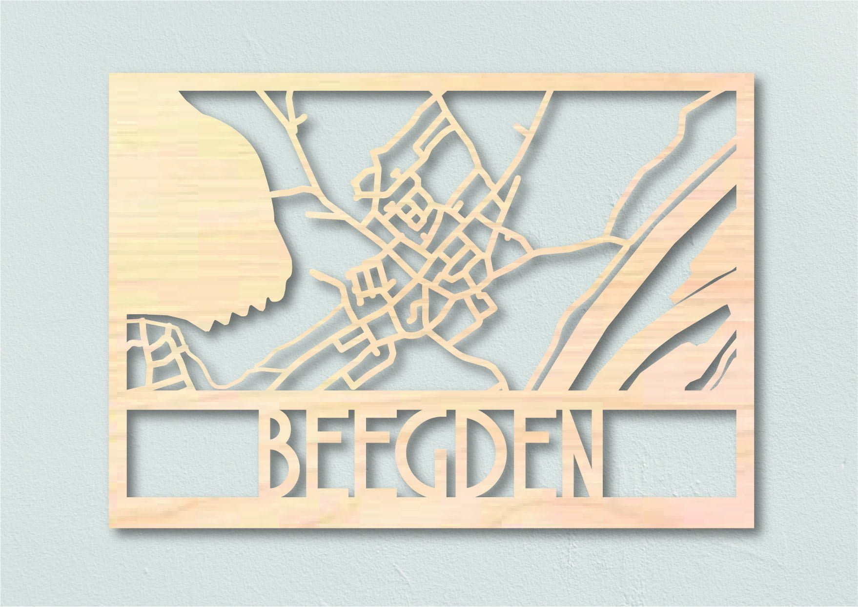 Laat een houten stadskaart maken van jouw dorp of stad. De dorps- en stadsplattegronden uit 4mm multiplex hout worden gemaakt in samenwerking met meubelwinkel de Frisfabriek in Panningen. Optioneel kan de houten plattegrond ook zwart worden gebeitst.