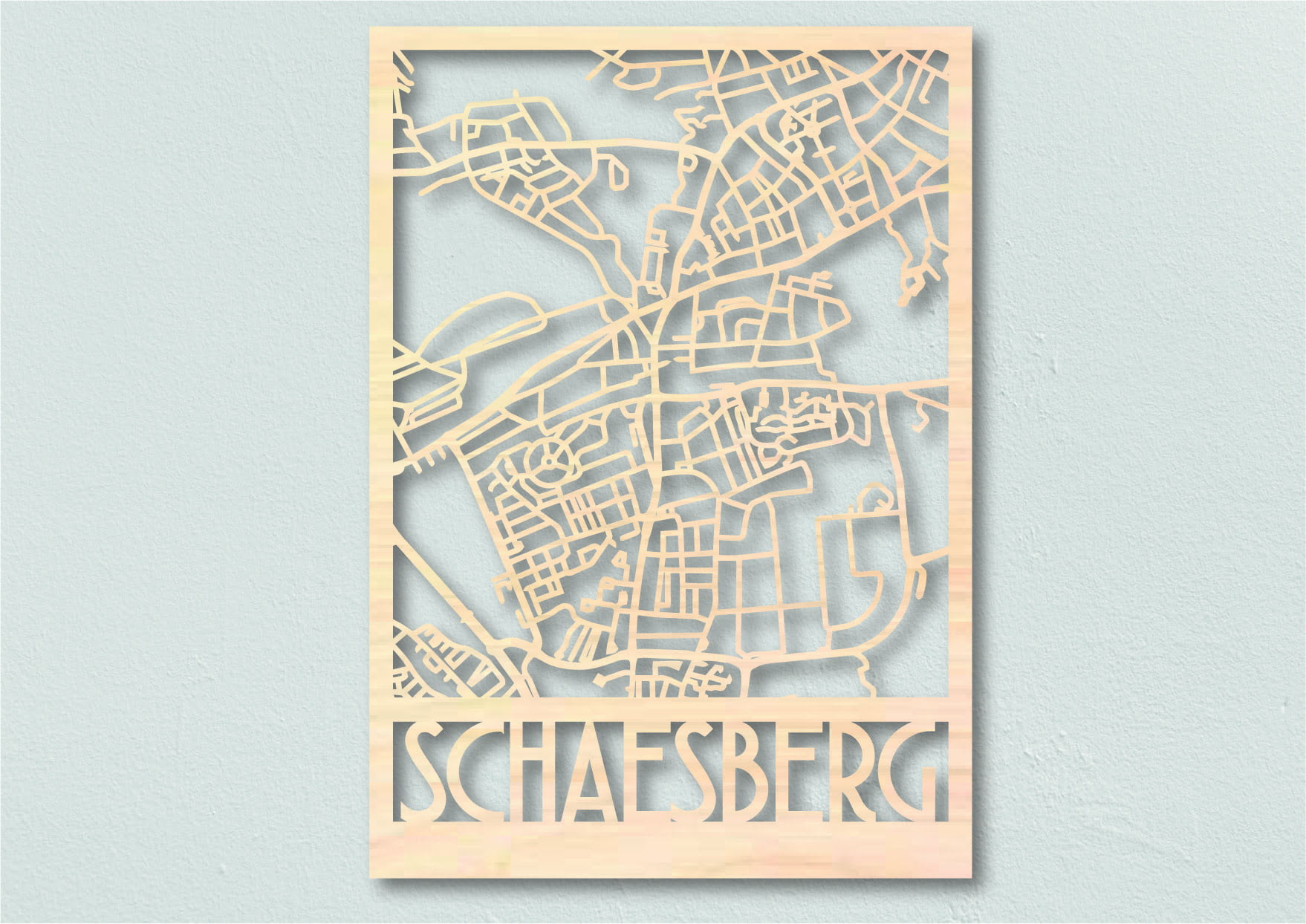 Laat een houten stadskaart maken van jouw dorp of stad. De dorps- en stadsplattegronden uit 4mm multiplex hout worden gemaakt in samenwerking met meubelwinkel de Frisfabriek in Panningen. Optioneel kan de houten plattegrond ook zwart worden gebeitst.
