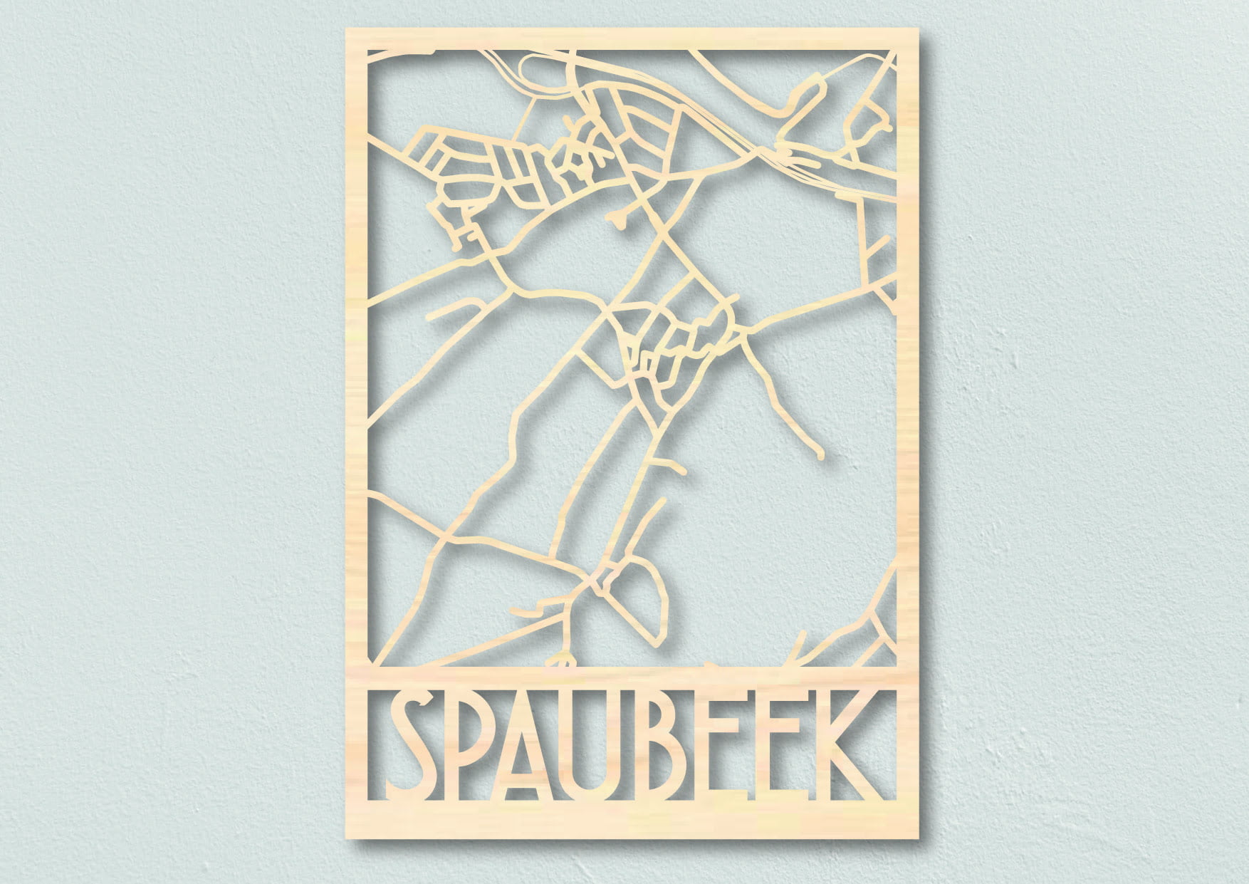 Laat een houten stadskaart maken van jouw dorp of stad. De dorps- en stadsplattegronden uit 4mm multiplex hout worden gemaakt in samenwerking met meubelwinkel de Frisfabriek in Panningen. Optioneel kan de houten plattegrond ook zwart worden gebeitst.