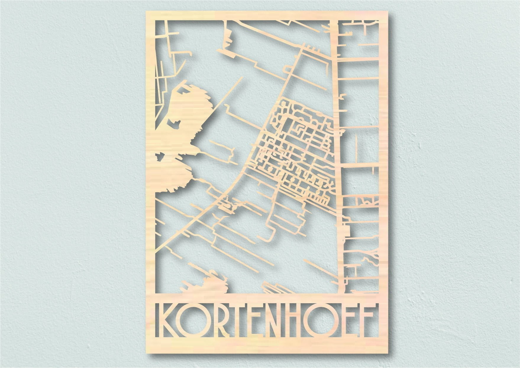 Laat een houten stadskaart maken van jouw dorp of stad. De dorps- en stadsplattegronden uit 4mm multiplex hout worden gemaakt in samenwerking met meubelwinkel de Frisfabriek in Panningen. Optioneel kan de houten plattegrond ook zwart worden gebeitst.