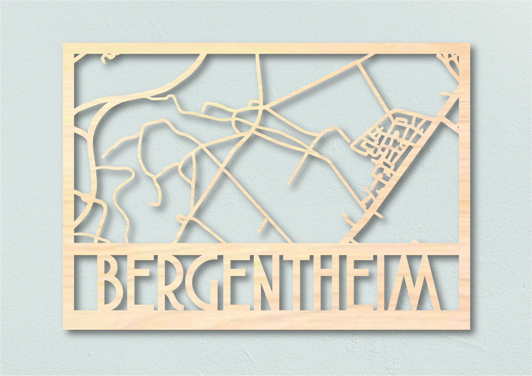 Laat een houten stadskaart maken van jouw dorp of stad. De dorps- en stadsplattegronden uit 4mm multiplex hout worden gemaakt in samenwerking met meubelwinkel de Frisfabriek in Panningen. Optioneel kan de houten plattegrond ook zwart worden gebeitst.