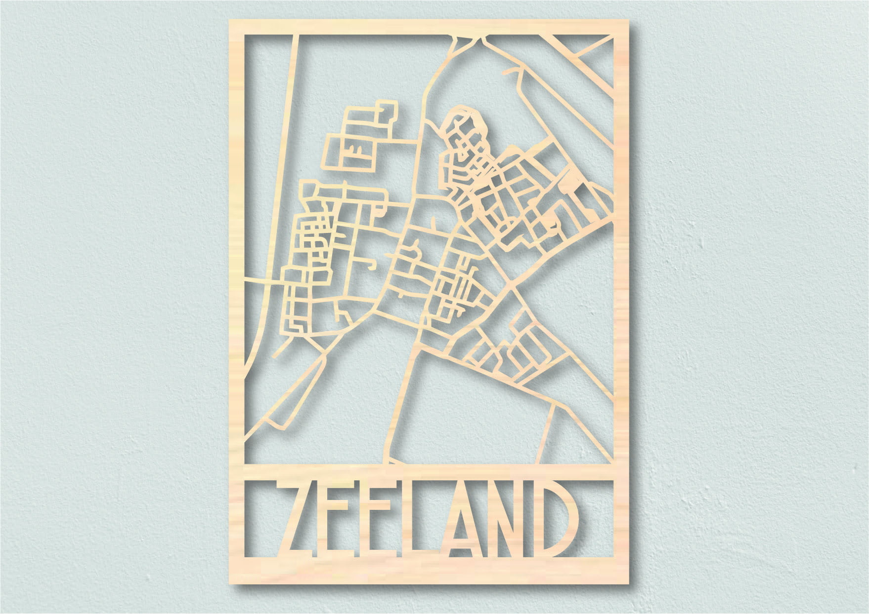 Laat een houten stadskaart maken van jouw dorp of stad. De dorps- en stadsplattegronden uit 4mm multiplex hout worden gemaakt in samenwerking met meubelwinkel de Frisfabriek in Panningen. Optioneel kan de houten plattegrond ook zwart worden gebeitst.