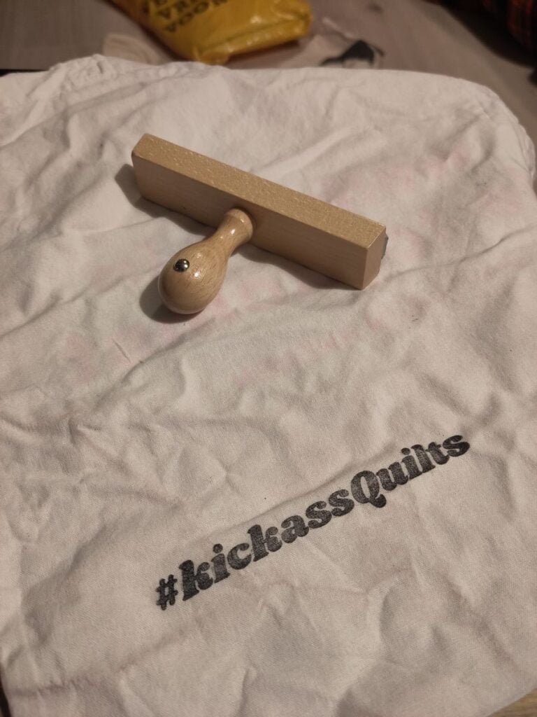 De stempel werkte goed! Diep genoeg uitgesneden om met textielverf te gebruiken en de tekst duidelijk leesbaar te houden. Heel tevreden!